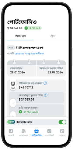 আত্মবিশ্বাসের সাথে বিনিয়োগ করুন, মনে রাখবেন যে 6 মাস ট্রেড করার পরে, বাজার পরিস্থিতি নির্বিশেষে আপনি ডিপোজিটের 50% রিটার্ন পাবেন
