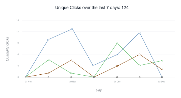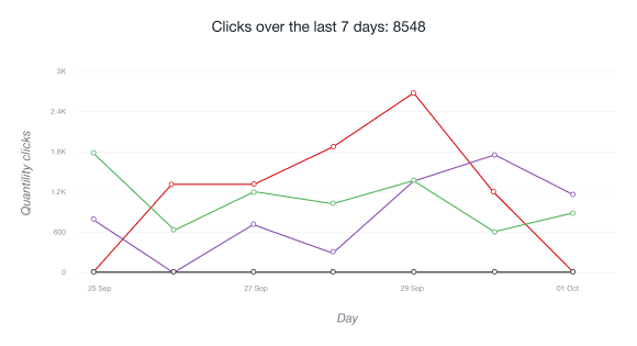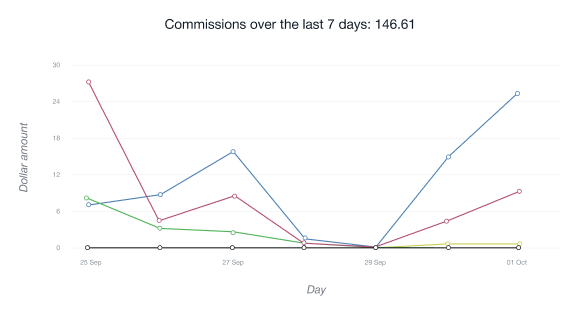 • چارٹ آپ کے ایفی لی ایٹ لنک پر ہونے والے کلکس کے ذریعہ بننے والے ریفرلز کی کل تعداد دکھاتا ہے