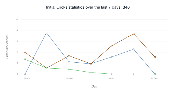 • چارٹ ان لوگوں کی تعداد کو ظاہر کرتا ہے کہ جنہوں نے پہلی بار آپ کے ایفی لی ایٹ لنک پر کلک کیا ہے
