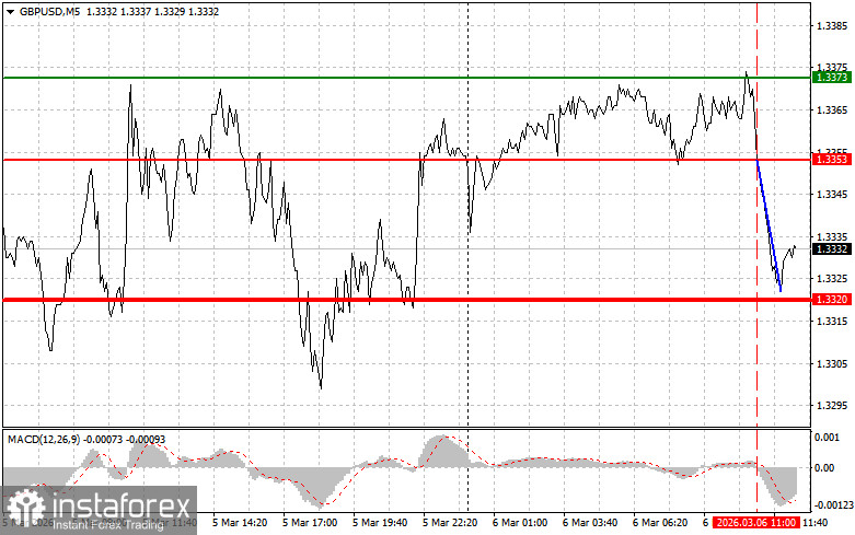 Тест цены 1.3353 пришелся на момент, когда MACD только начинал движение вниз от нулевой отметки, что стало подтверждением правильной точки входа на продажу фунта. В результате пара снизилась более чем на 30 пунктов.