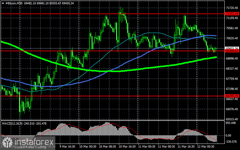 Что касается технической картины Bitcoin, то покупатели сейчас нацелены на возврат уровня $71 300, который открывает прямую дорогу на $73 000, а там уже и рукой подать до уровня 74 600. Самой дальней целью выступит максимум в районе $77 400, преодоление которого будет означать попытки возврата бычьего рынка. В случае падения биткоина покупателей жду на уровне $69 300. Возврат торгового инструмента под эту область может быстро свалить BTC в район $66 700. Самой дальней целью будет область $64 900.