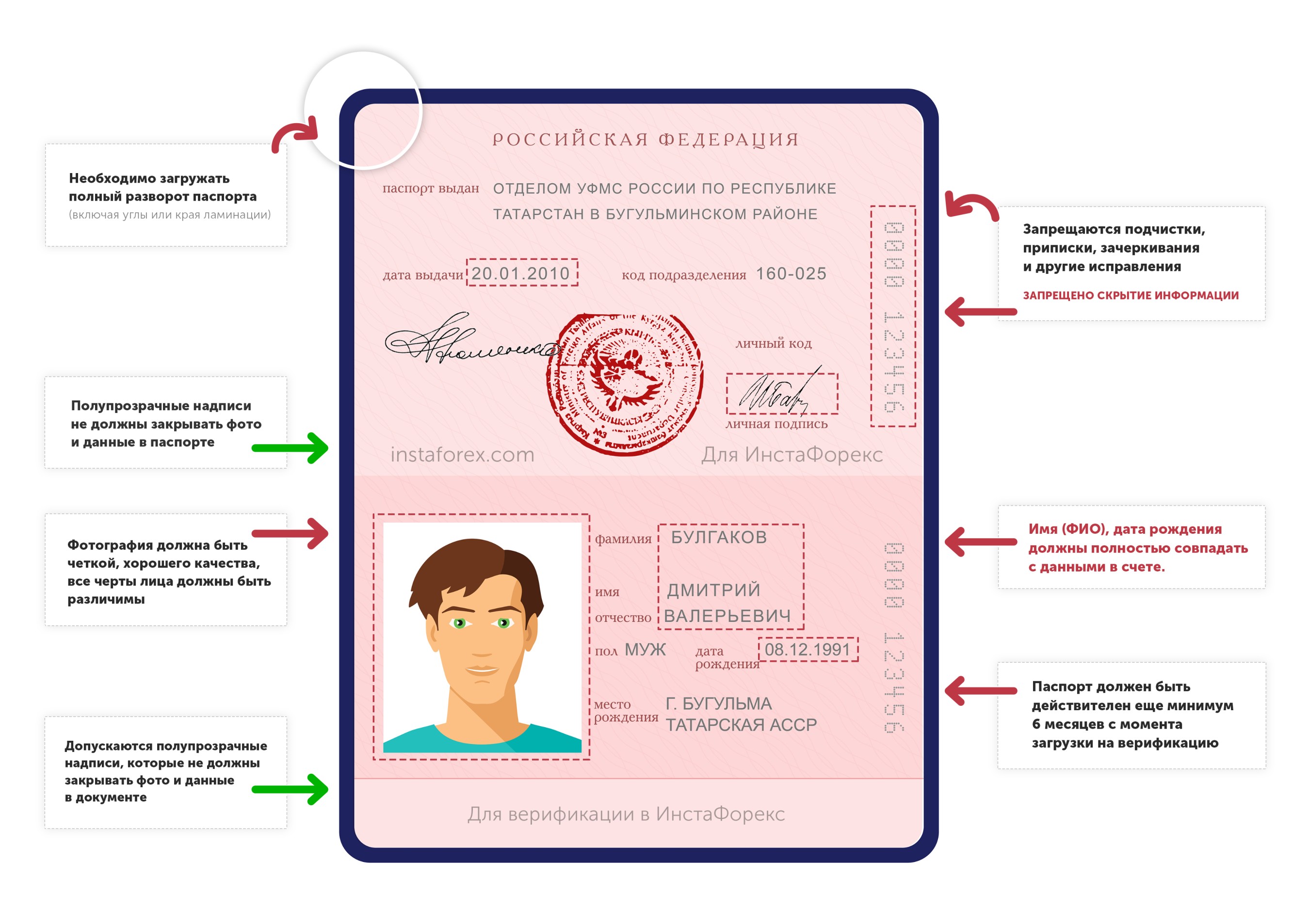 3. На изображении не должно быть явных подчисток, приписок, зачеркнутых слов или иных исправлений, следов графического монтажа. Допускаются полупрозрачные надписи "Для InstaForex", которые не должны закрывать фотографию и данные в документе. Данное правило не действует, если планируется использовать для пополнения/снятия средств банковскую карту или банковский перевод.