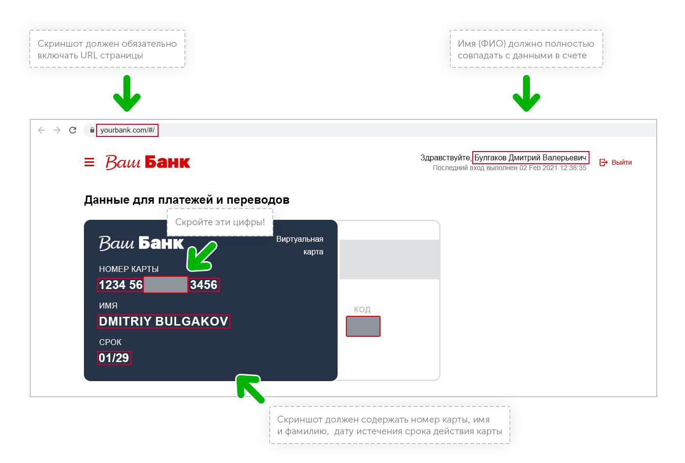 Каждая транзакция с такой карты должна подтверждаться скриншотом об оплате. Подтверждение необходимо отправлять на адрес finance-docs@mail.instaforex.com с электронной почты, указанной в личных данных вашего торгового счета. В теме письма не забудьте указать номер торгового счета.