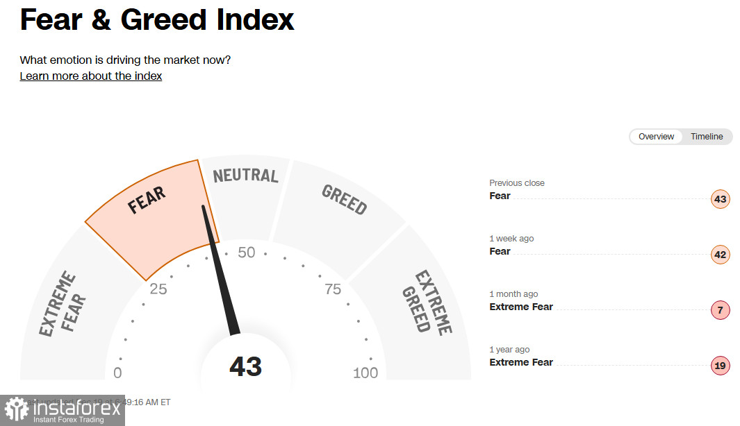 Так называемый, индекс «страха и жадности» инвесторов вчера сместился в нейтральную зону и к отметке 47 после публикации американских CPI, хотя до этой публикации оставался в зоне «страха» и вблизи отметки 40 (из 100).